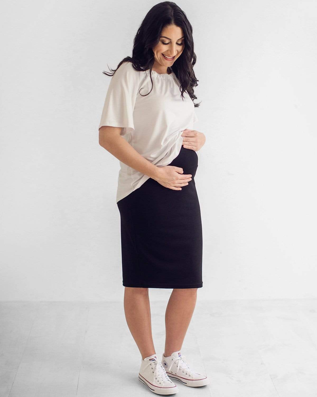 Gently hugs your bump with a wide waistband that can be worn over or under